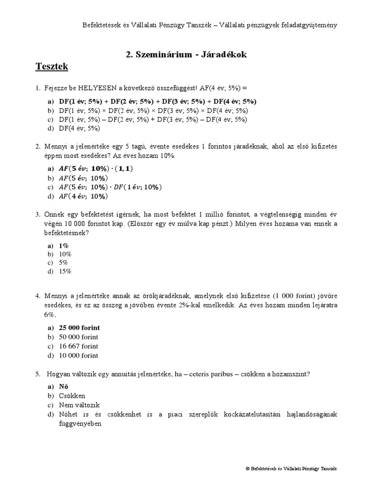 Pdf Penzugyi Szamitasok Tesztfeladatok Es Megoldasok