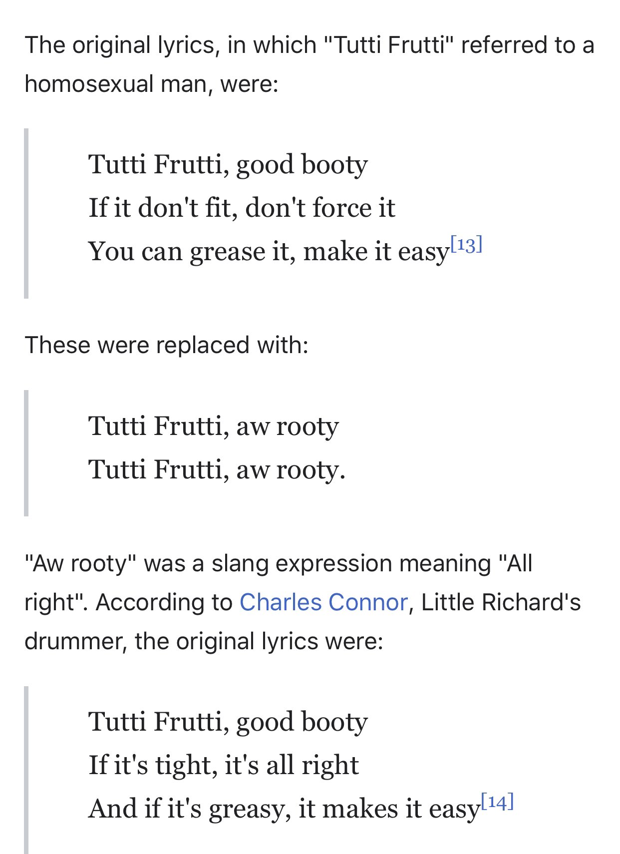 Til The Original Lyrics To Little Richard S Tutti Frutti Were Tutti Frutti Good Booty If It Don T Fit Don T Force It You Can Grease It Make It Easy Via R Todayilearned