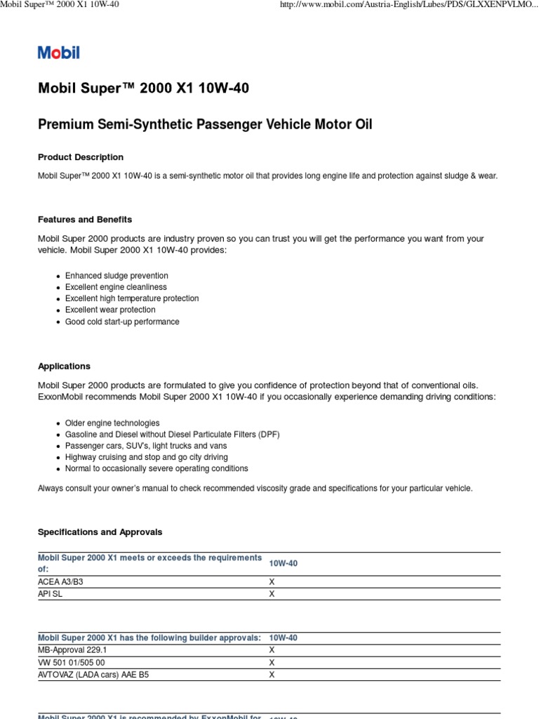 Mobil Super 2000 10w40 Specification