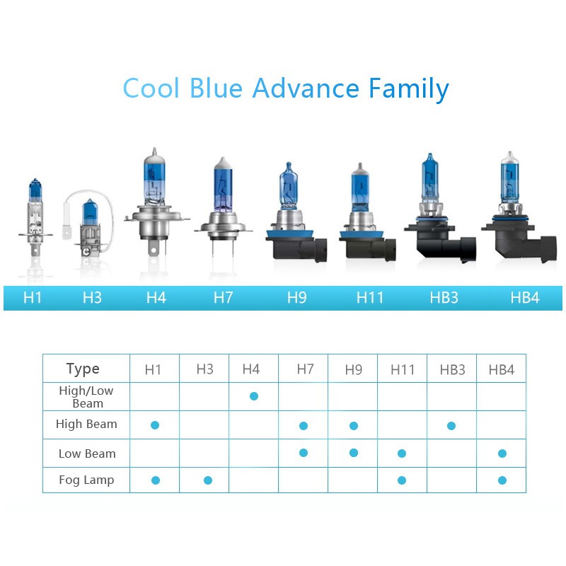 Osram Cool Blue Advance H1 H3 H4 H7 H9 H11 9005 Hb3 Hb4 5000k Car Halogen Headlight Bulbs Fog Lamp Shopee Singapore