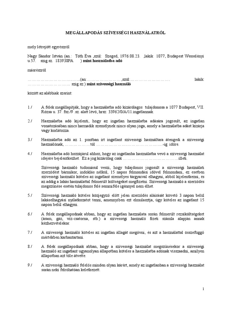 Szivessegi Helyiseghasznalati Szerzodes Pdf Ingyenes Letoltes